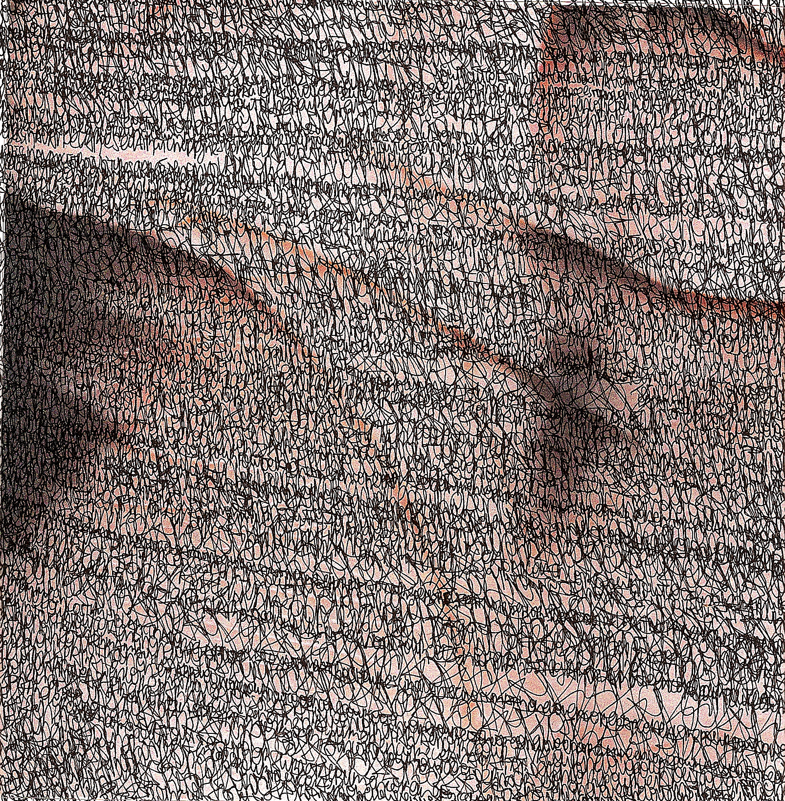 Série de 16 photographies imprimées sur papier celluloïd transparent posées sur 16 dessins au stylo encre