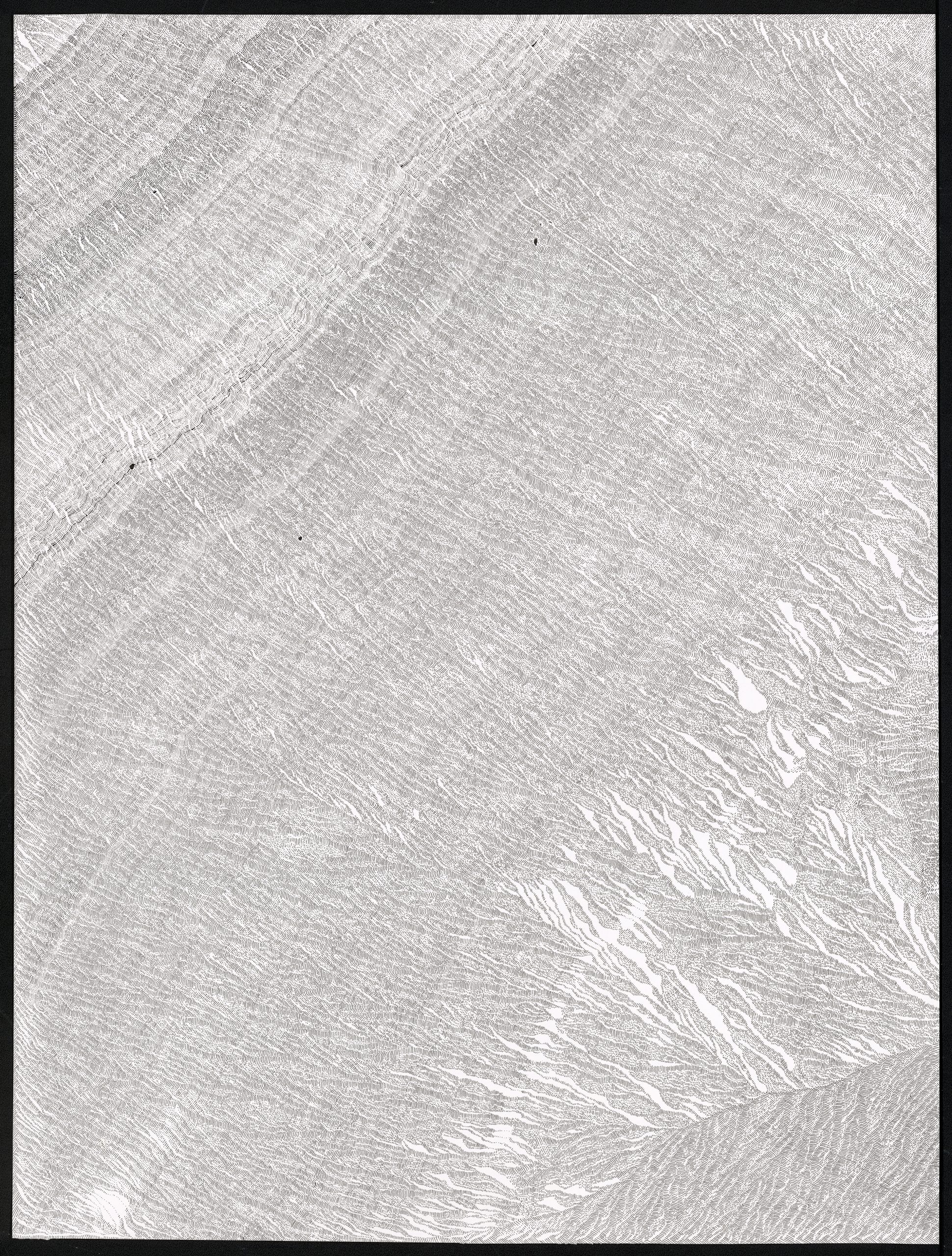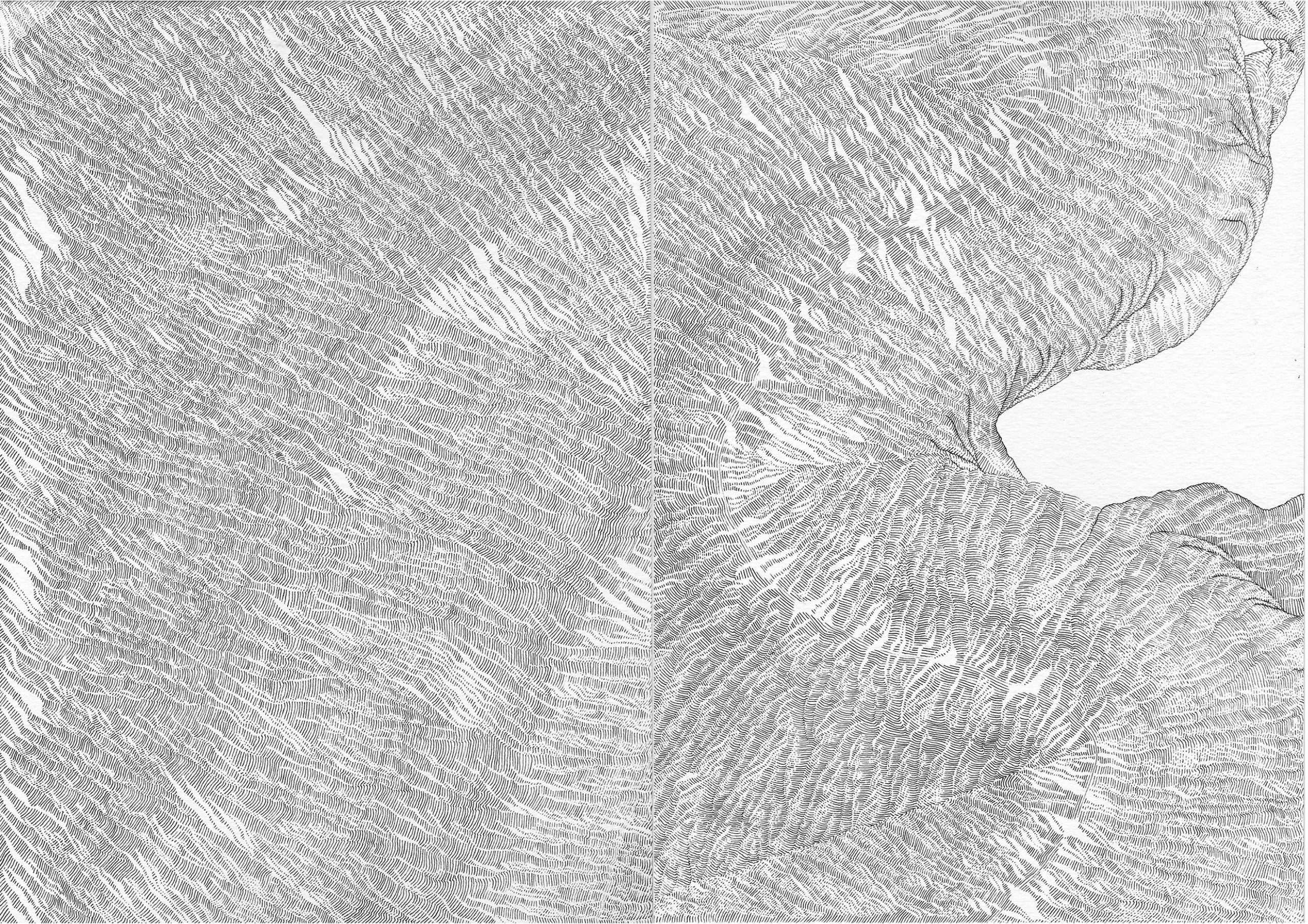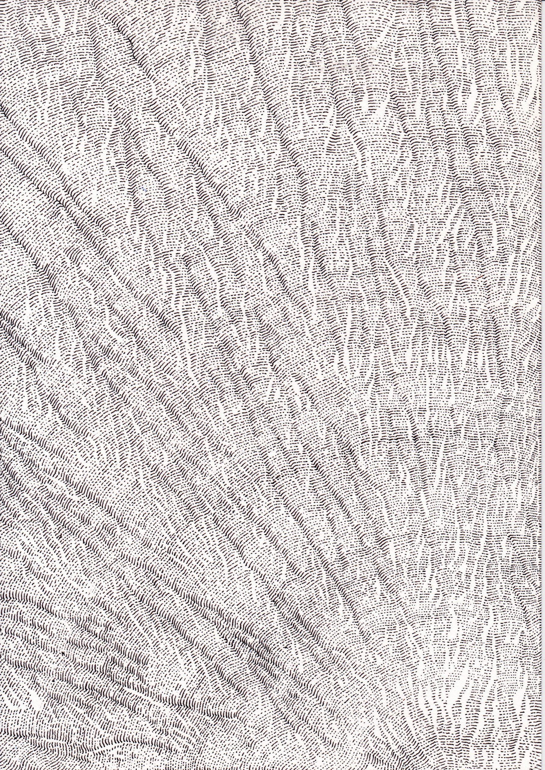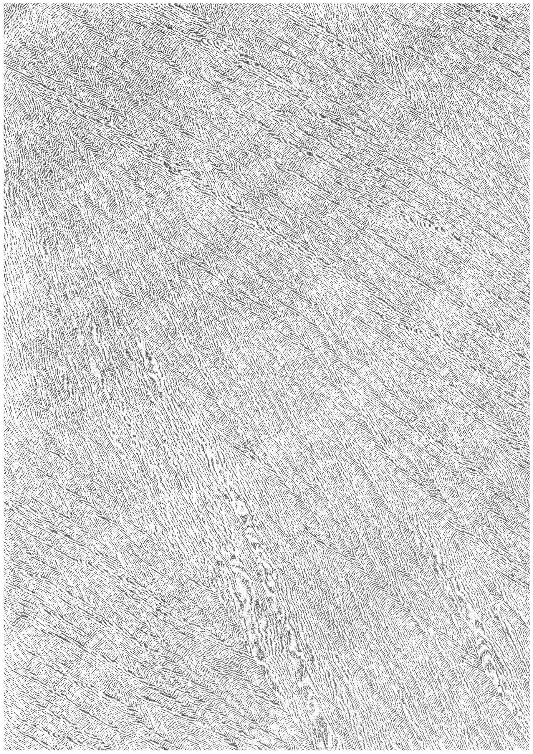 Ce travail est une réflexion sur le temps, une évocation de la mémoire qui est, peut être, plus métaphorique que dans mes autres travaux où je travaille à partir d’archives. Peut être plus poétique aussi.Par le fait de tracer, de suivre la ligne précédente, de répéter ce geste, se créent des mondes dont je n’ai aucune idée de la forme qu’ils prendront. Le résultat apparait sous mes yeux, ces mondes évoquent la nature et sa construction dans les strates du temps (lichens, roches, bois, …).